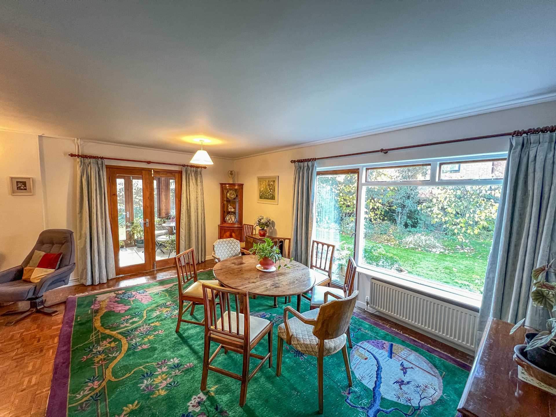 Dog-legged stairs lead us to the first floor. Turning left along the landing gives access to three double bedrooms, all with built in wardrobes/storage and a family bathroom with a separate standalone shower & bath. If you take a right at the top of the stairs there is a door which opens on to a galley kitchen adjoined & part of the annex area which is built above the garage. The annex also includes a large living area, double bedroom, and small shower room with a W/C. Separate access from the outside to the annex is via a spiral staircase. Under the annex is where you will find the large garage with ample storage and a further garden shed. The property also has further scope to extend at the side or rear of the plot (STPP). Incorporating eco-friendly features, the property uses solar panels to generate energy, reducing the environmental impact and cost of living. This is a significant advantage for those looking to reduce their carbon footprint and energy bills. Details of the feed-in tariff are available on request. All main services including gas central heating. The property is in a 'tucked away' location without being overlooked and has a lovely well-kept mature garden surrounding enjoying a great deal of privacy. A short walk to all amenities (a very short walk to Waitrose).